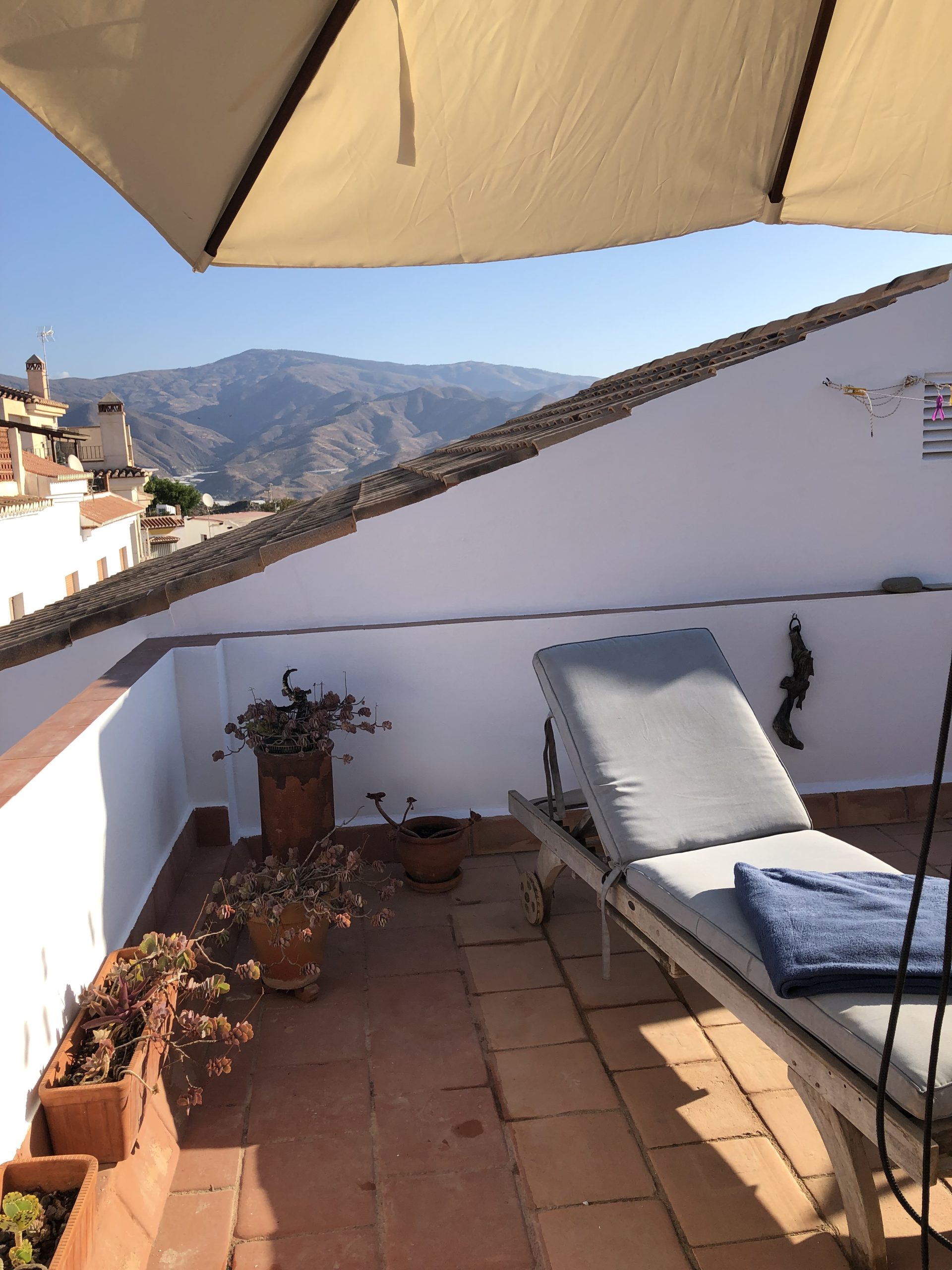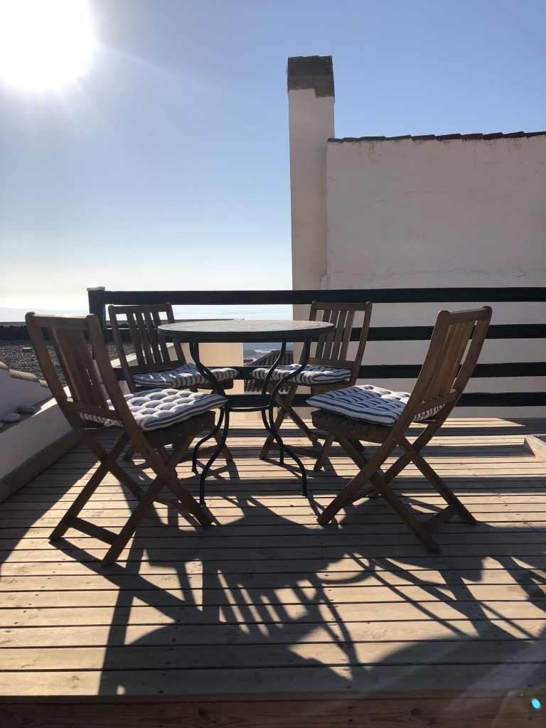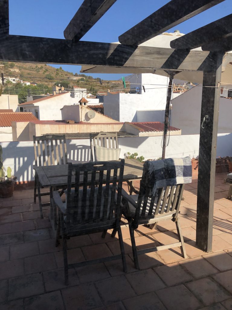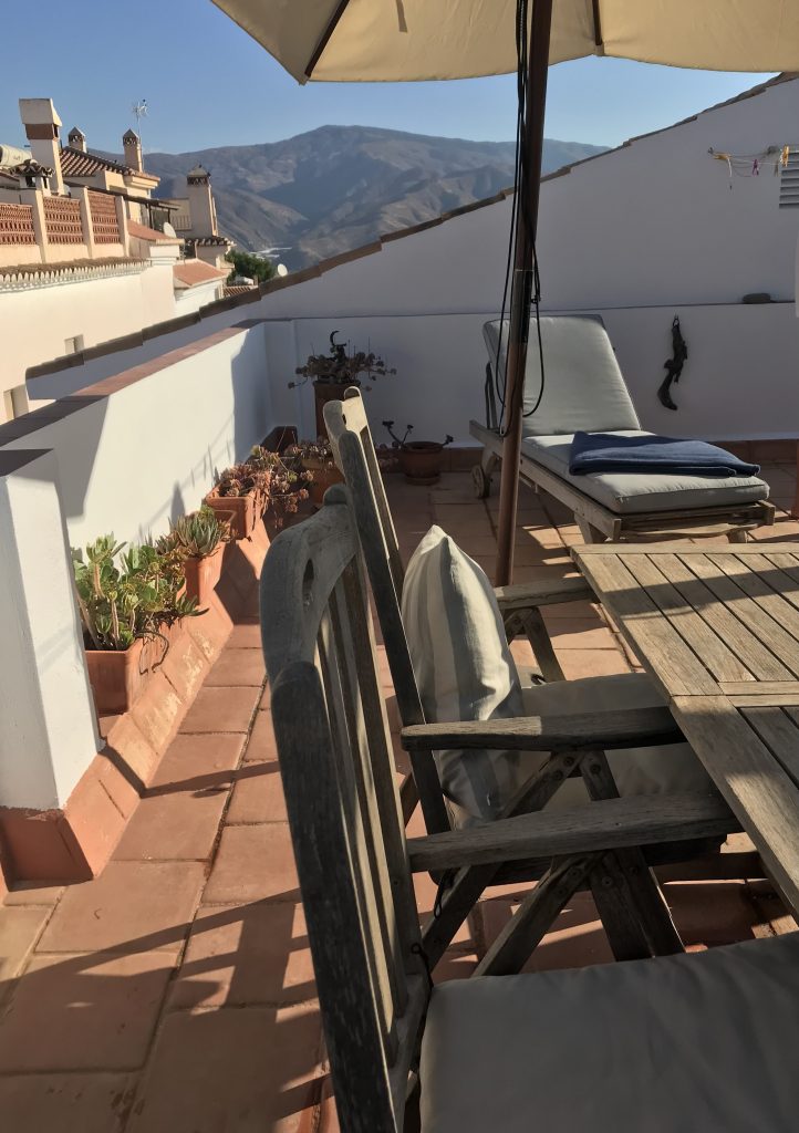Øverst en tagterrasse med et lille forrum. Heroppe er der en smuk 360° udsigt til Middelhavet og sydsiden af Sierra Nevada, Alpujarras-bjergene.