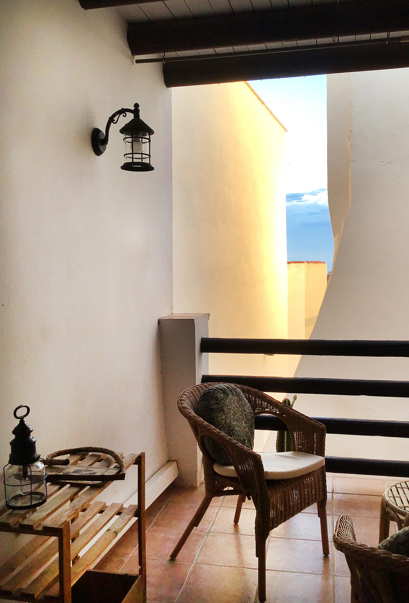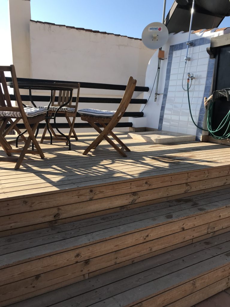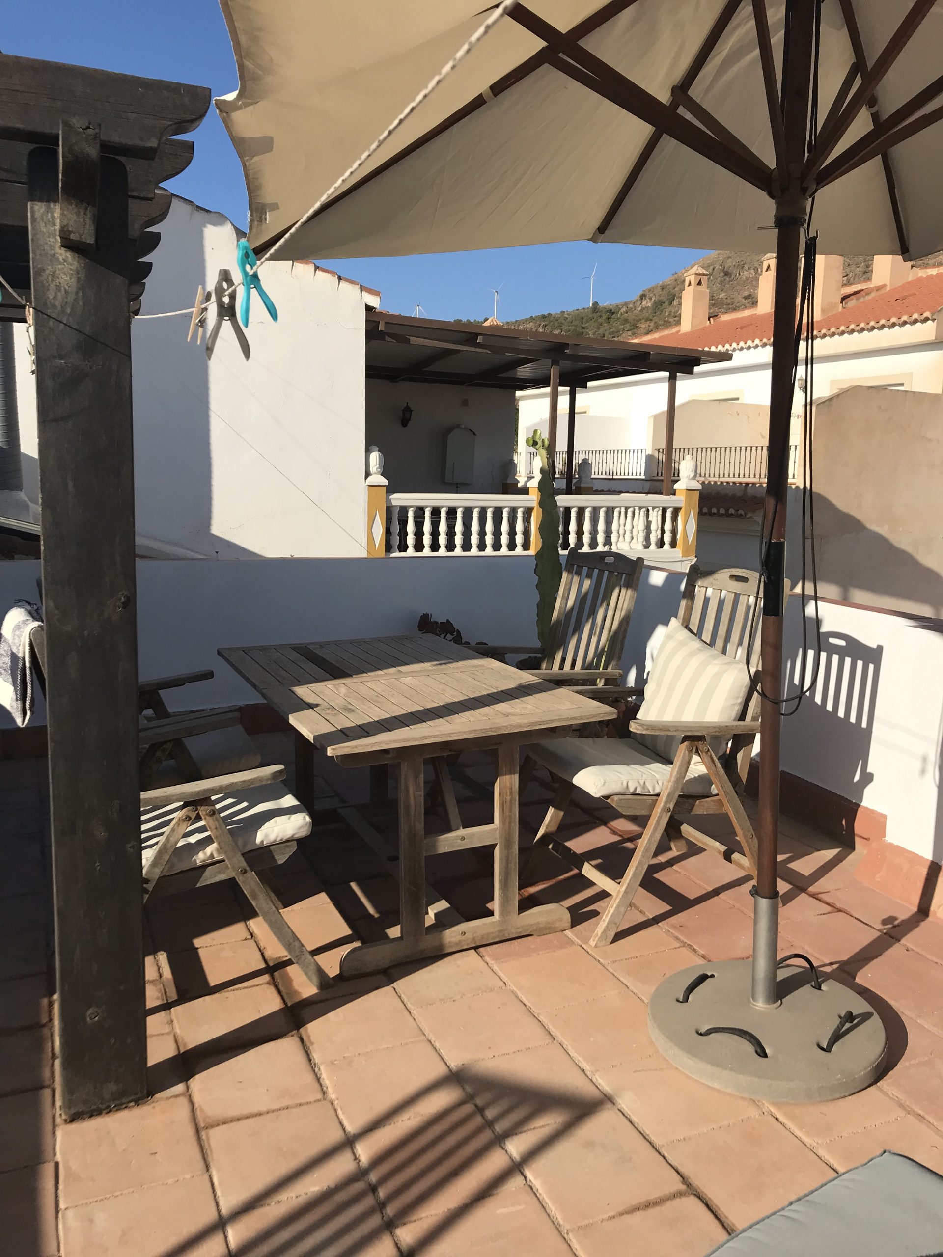 Øverst en tagterrasse med et lille forrum. Heroppe er der en smuk 360° udsigt til Middelhavet og sydsiden af Sierra Nevada, Alpujarras-bjergene.
