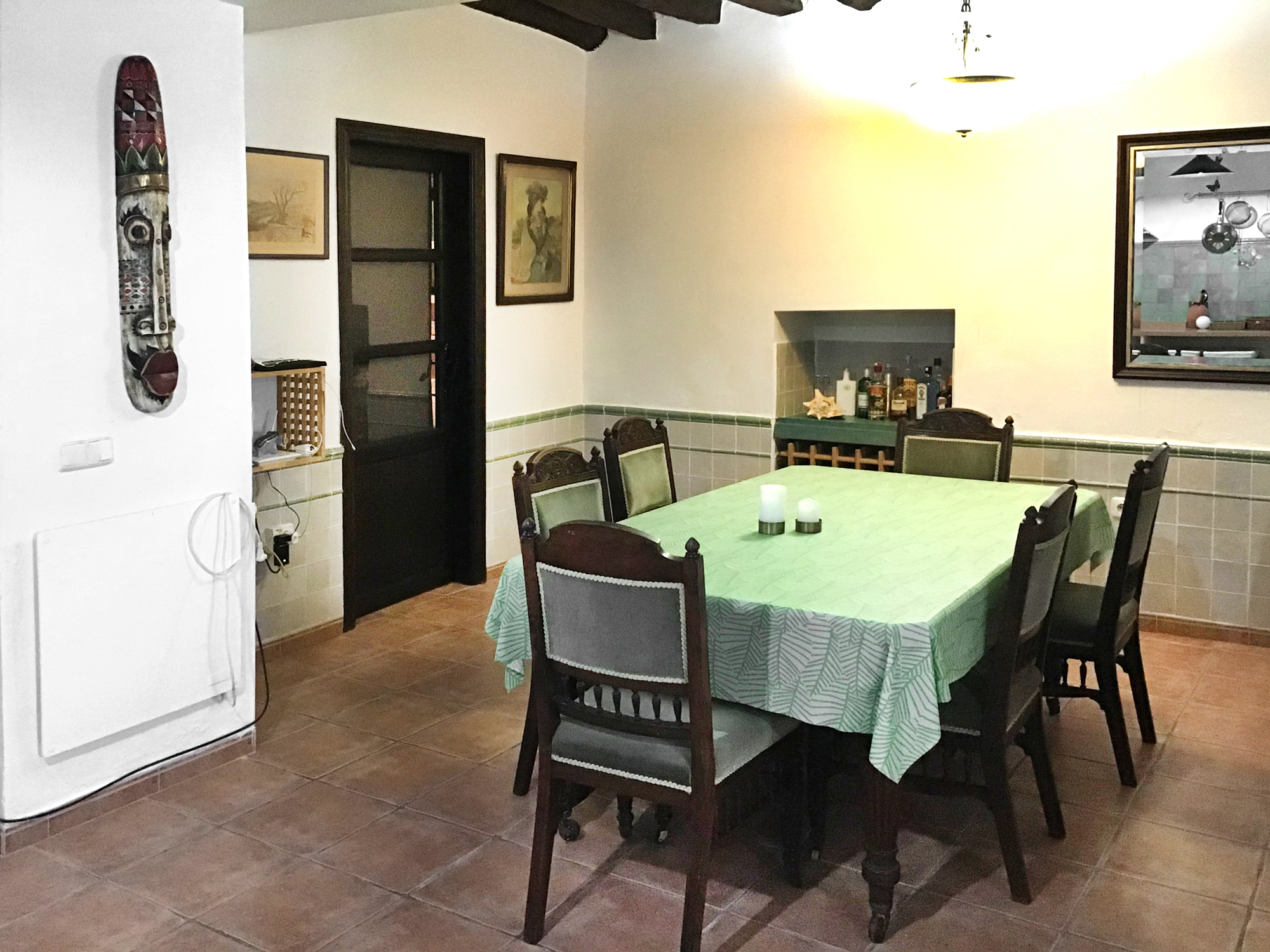 Stueetagen: køkken-alrum, entre/TV-stue, pejsestue, ”multirum” (indeholdende toilet, vaskemaskine mm) og patio. Wifi.
